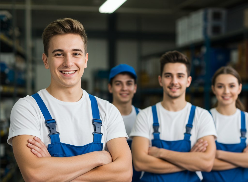 - Moderne Arbeitskleidung und hochwertiges Werkzeug